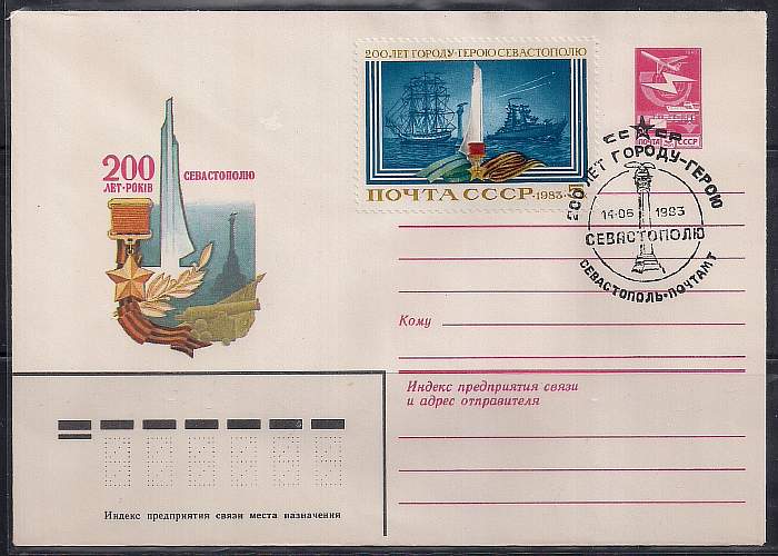 ХМК со спецгашением. 200 лет городу-герою Севастополю 14.06.83 год. Севастополь почтамт