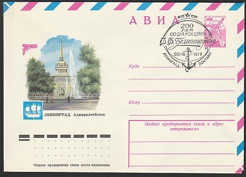 ХМК со спецгашением. 200 лет со дня рождения Ф.Ф. Беллинсгаузена, 20.09.1978 год, Ленинград, почтамт