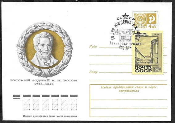 ХМК со спецгашением - 200 лет со дня рожедения К.И. Росси, Ленинград, 29.12.1975 год