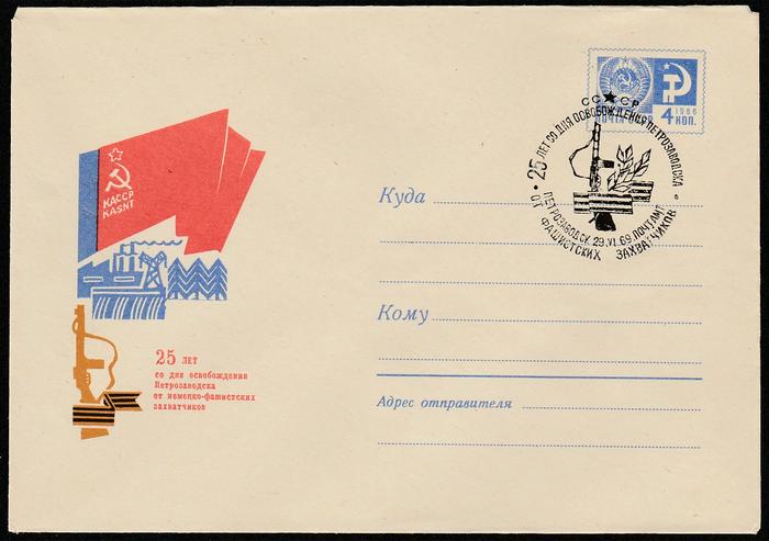 ХМК со спецгашением. 25 лет освобождения Петрозаводска от немцев. 29.06.69 г.