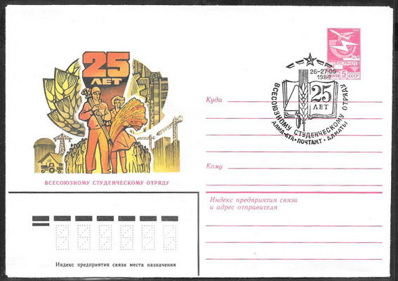 ХМК со спецгашением - 25 лет Всесоюзному студенческомму отряду, 1984 год