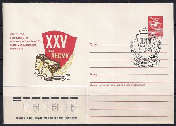 ХМК со спецгашением. 25-й съезд ЛКСМ Украины, 05-06.03.1987 год, Киев