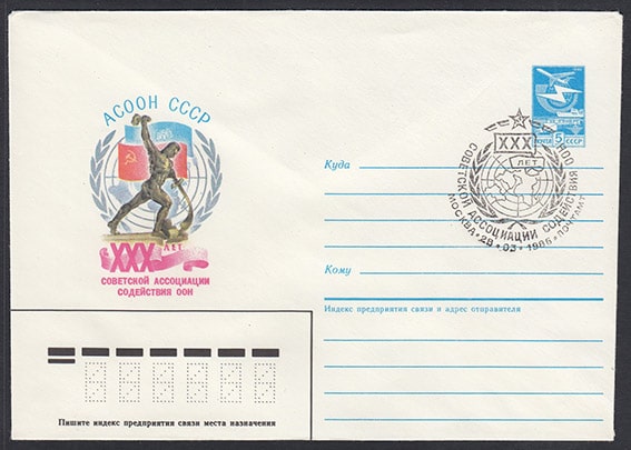 ХМК со спецгашением - 30 лет Советской Ассоциации Содействия ООН, Москва 28.03.1986 год