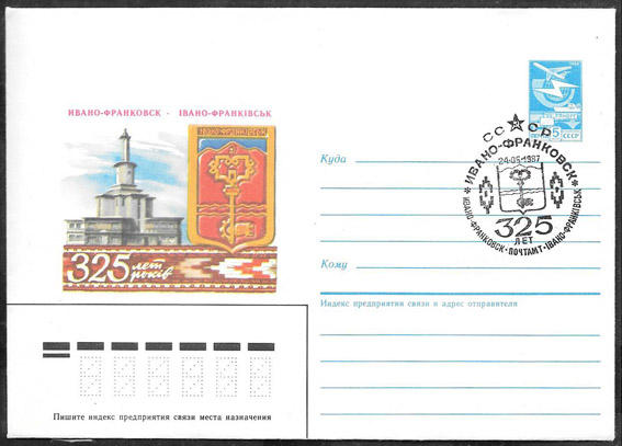 ХМК со спецгашением - 325 лет Ивано-Франковск, Ивано-Франковск, 1987 год