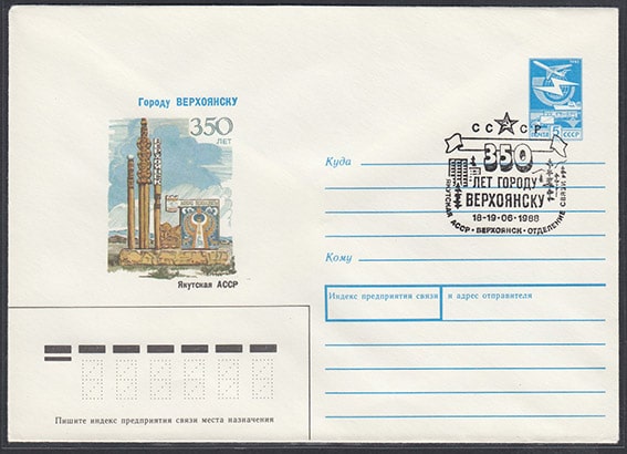 ХМК со спецгашением - 350 лет городу Верхоянску, Верхоянск 18-19.06.1988 год