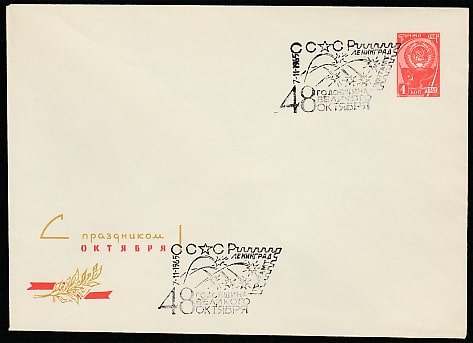 ХМК со спецгашением. 48 годовщина Великого Октября, 07.11.1965 год, Ленинград, почтамт