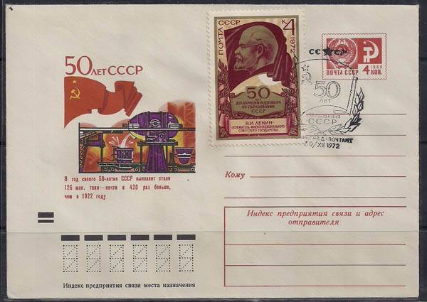 ХМК со спецгашением. 50 лет образованию СССР. Сталелитейное производство, 30.12.1972 год, Ленинград почтамт