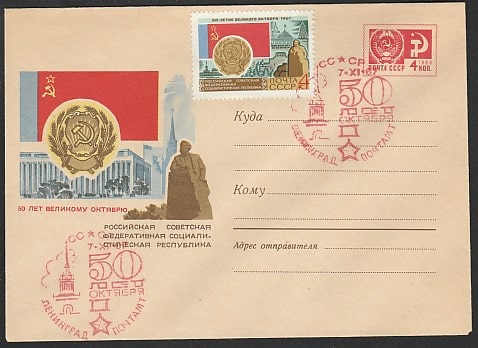 ХМК со спецгашением. 50 лет Октября, 07.11.1967 год, Ленинград, почтамт