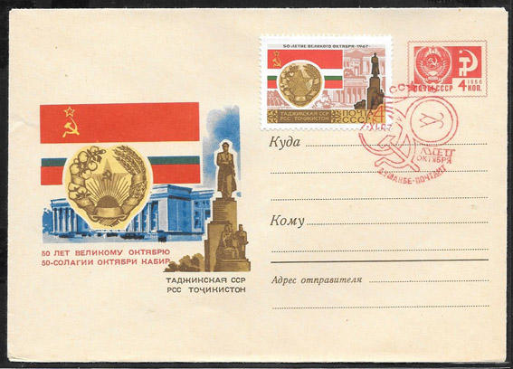 ХМК со спецгашением - 50 лет Октября, Душанбе, 1967 год