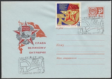 ХМК со спецгашением. 52 годовщина Октября, 07-08.11.1969 год, Ленинград, почтамт