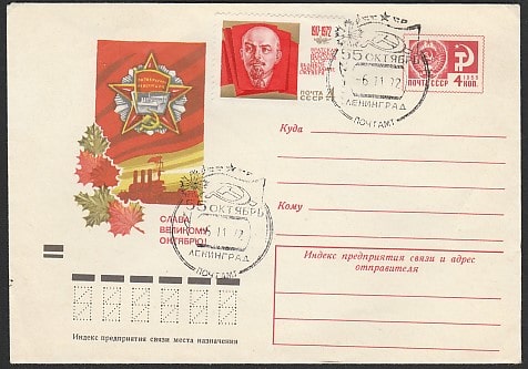 ХМК со спецгашением. 55-я годовщина Октября, 06.11.1972 год, Ленинград, почтамт
