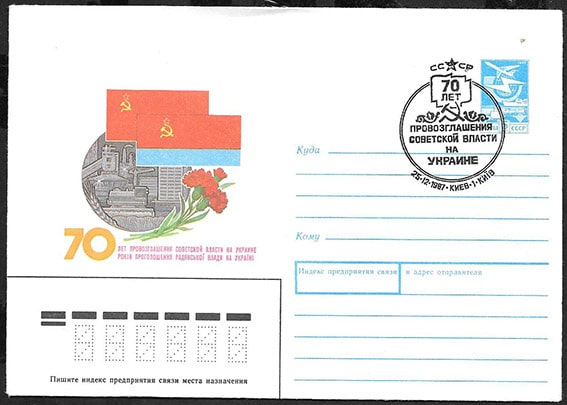 ХМК со спецгашением - 70 лет Советской власти на Украине, Киев, 25.12.1987 год
