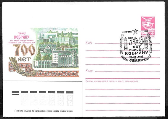 ХМК со спецгашением - 700 лет городу Кобрину, Кобрин 18.09.1987 год