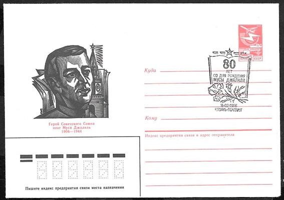 ХМК со спецгашением - 80 лет со дня рождения Мусы Джалиля. Казань 15.02.1986 год