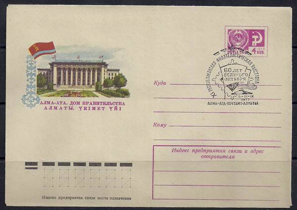 ХМК со спецгашением. Алма-Ата. Дом правительства. ХI Республиканская филвыставка 05-11.09.1977 год, Алма-Ата почтамт