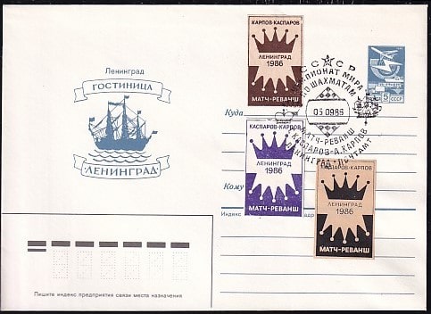 ХМК со спецгашением "ЧМ по шахматам: Г. Каспаров - А. Карпов", 5.09.1986 г. Ленинград