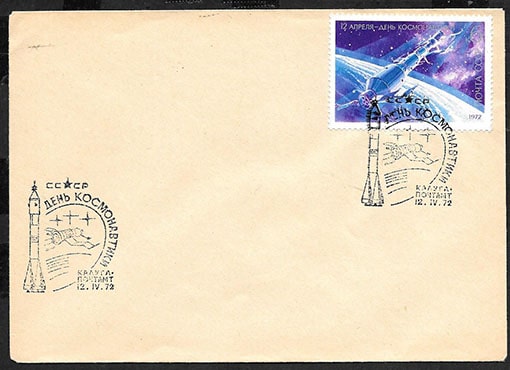 Конверт со спецгашением. День космонавтики, 12.04.1972 год, Калуга