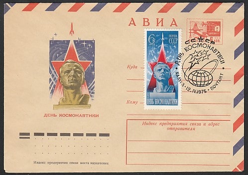 ХМК со спецгашением. День космонавтики, 12.04.1975 год, Калуга, почтамт