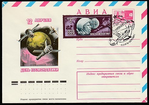 ХМК со спецгашением. День космонавтики, 12.04.1977 год, Калуга, почтамт