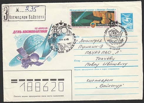 ХМК со спецгашением. День космонавтики, 12.04.1986 год, Космодром Байконур, прошёл почту