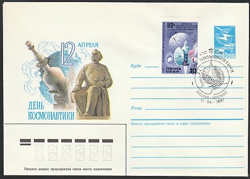 ХМК со спецгашением. День космонавтики, 12.04.1987 год, Москва, почтамт