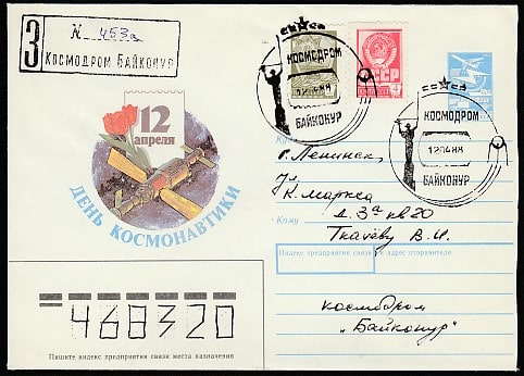 ХМК со спецгашением. День космонавтики, 12.04.1988 год, Космодром Байконур, прошёл почту (+1Ю)