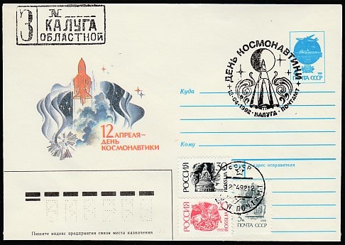 ХМК со спецгашением. День космонавтики, 12.04.1992 год, Калуга, почтамт