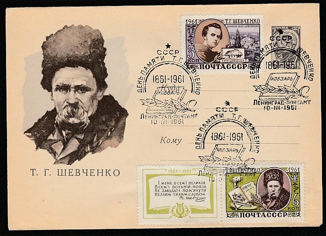 ХМК со спецгашением. День памяти Т.Г. Шевченко, 10.03.1961 год, Ленинград, почтамт.