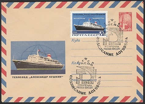 ХМК со спецгашением. "ЭКСПО-67" в Монреале. Подписание договора, 28.04.1966 год, Москва, почтамт