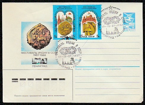 ХМК со спецгашением. Фестиваль Индии в СССР, 17-19.07.1987 год, Ленинград, почтамт.