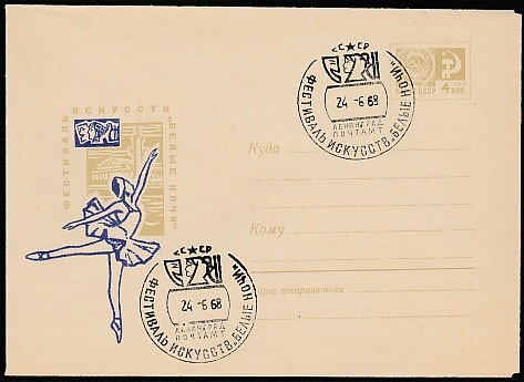 ХМК со спецгашением. Фестиваль искусств "Белые ночи", 24.06.1968 год, Ленинград, почтамт