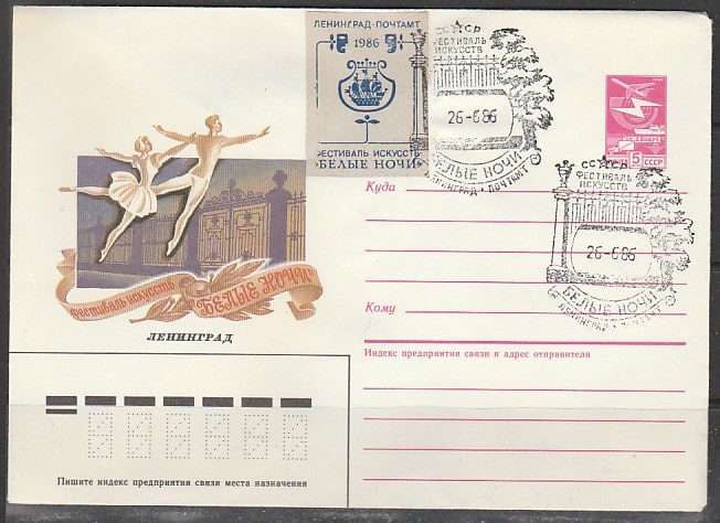 ХМК со спецгашением. Фестиваль искусств "Белые ночи", 26.06.1986 год, Ленинград, почтамт.