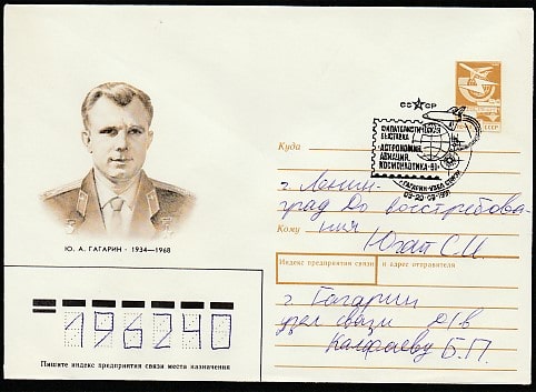 СГ 1991 год › ХМК со спецгашением. Филвыставка "Астрономия, авиация, космонавтика-8891", 09-20.03.1991 год, Гагарин, ус, прошёл почту (+1Ю)