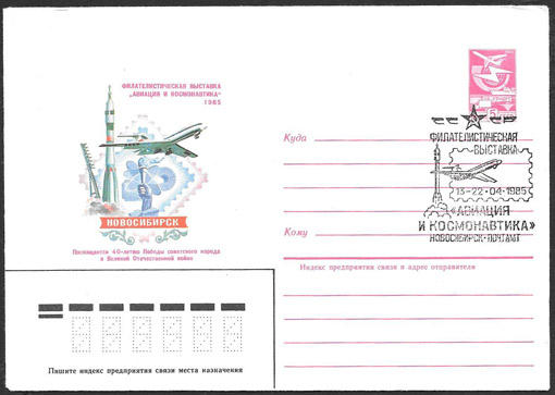 ХМК со спецгашением Филвыставка "Авиация и космонавтика". Новосибирск 13.04.1985 г