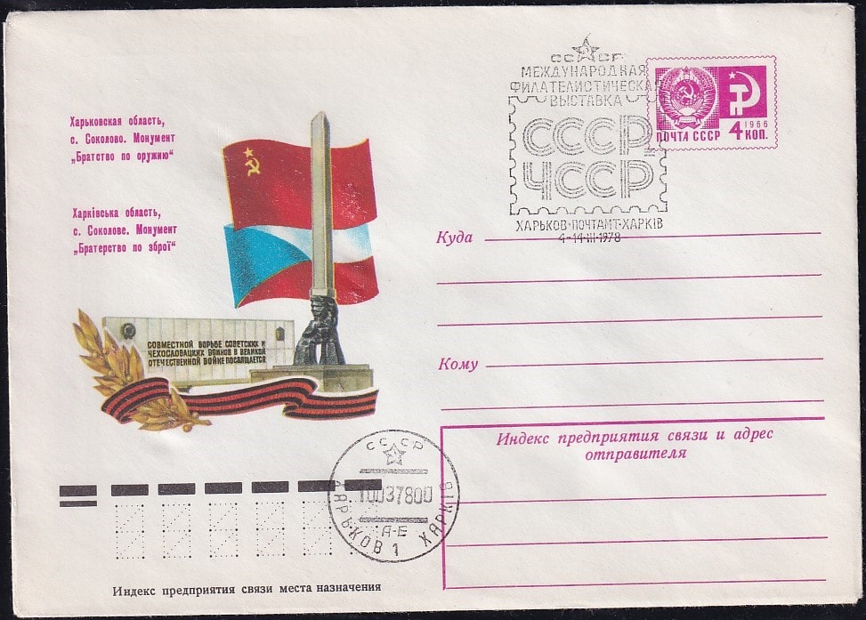 ХМК со спецгашением - Филвыставка СССР-ЧССР, 4-14.03.1978 год, Харьков