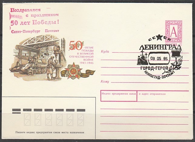 ХМК со спецгашением. Город - герой Ленинград, 09.05.1995 год, НДП, Ленинград, почтамт (III)