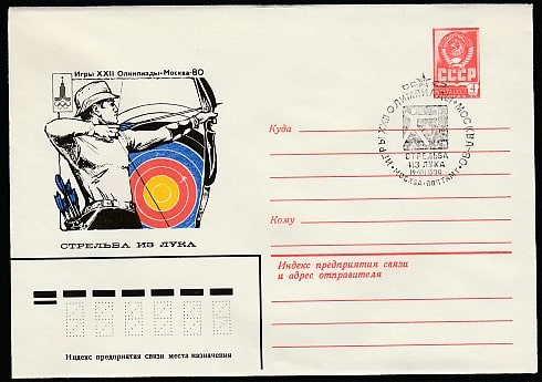 ХМК со спецгашением. Игры XXII Олимпиады. Стрельба из лука, 19.07.1980 год, Москва, почтамт