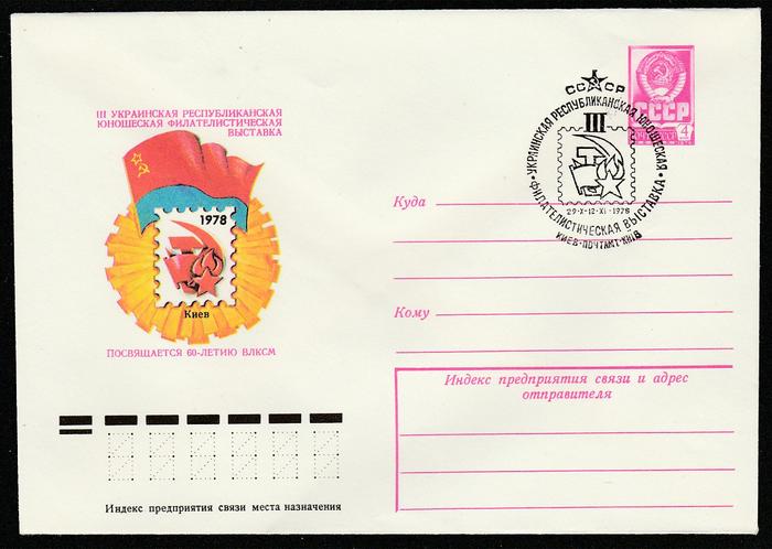 ХМК со спецгашением. III Украинская юношеская филвыставка. 29.10.-12.11.1978 г. Киев.