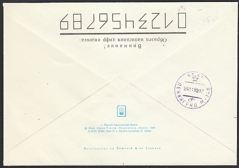 ХМК со спецгашением. Космодром "Плесецк", 16.11.1992 год, Мирный ус, Архангельской обл. ( 10Ю)