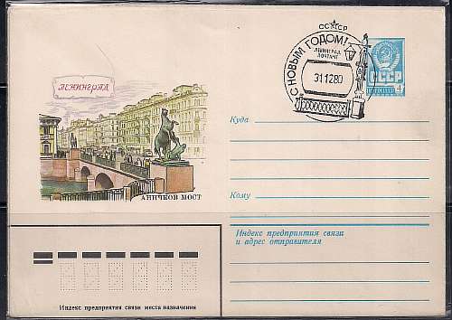 ХМК со спецгашением. Ленинград. Аничков мост. Спецгашение "С Новым годом!" 31.12.1980 год, Ленинград, почтамт
