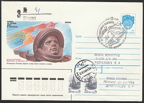 ХМК со спецгашением. Международная филвыставка "К звёздам-91", 06-14.04.1991 год, Москва, Г-34, прошёл почту (+1Ю)