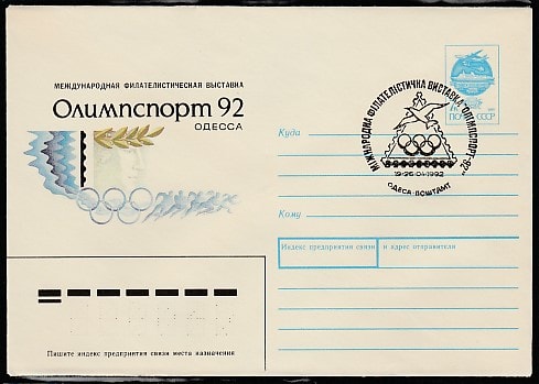 ХМК со спецгашением. Международная филвыставка "Олимпспорт-92", 19-26.04.1992 год, Одесса, почтамт (Ю)