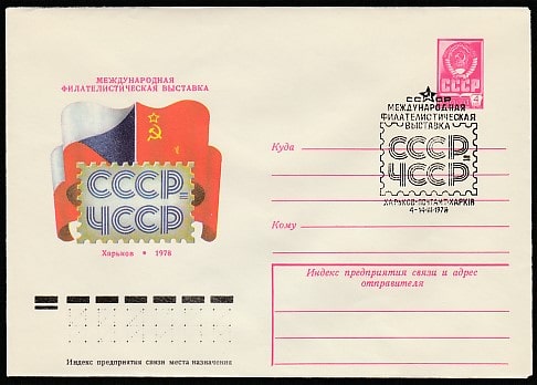 ХМК со спецгашением. Международная филвыставка "СССР-ЧССР", 04-14.03.1978 год, Харьков