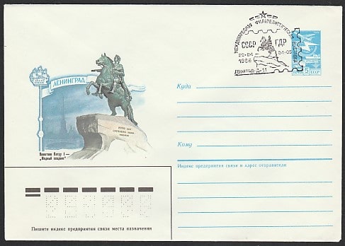 ХМК со спецгашением. Международная филвыставка "СССР - ГДР", 20.04.1986 год, Ленинград, Д-11
