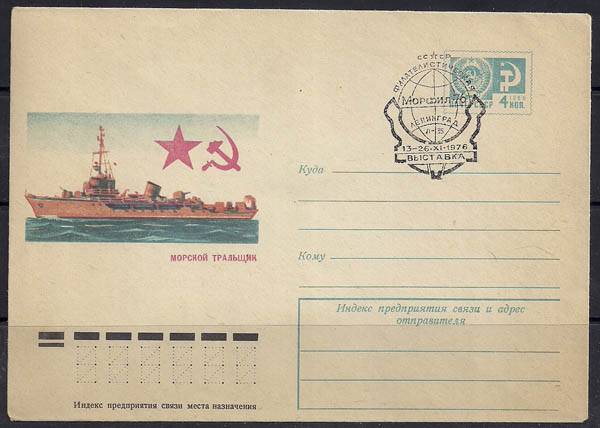 ХМК со спецгашением. Морской тральщик. Филателистическая выставка "Морфил-76", 13-26.11.1976 год, Ленинград