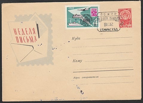 ХМК со спецгашением. Неделя письма, 18.10.1962 год, Ленинград