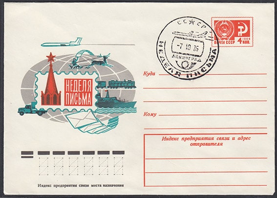 ХМК со спецгашением - Неделя письма, Ленинград 7.10.1976 год