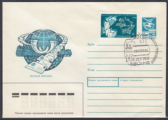 ХМК со спецгашением - Неделя письма, Ленинград 9.10.1988 год