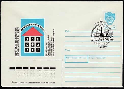 ХМК со спецгашением. Оздоровительная культурно - спортивная программа "Конкурс 89-91", 16.02.1991 год, Воронеж, почтамт (Ю)