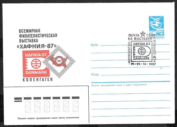 ХМК со спецгашением - Почта СССР на выставке "Хафния-87", Копенгаген 16-25.10.1987 год